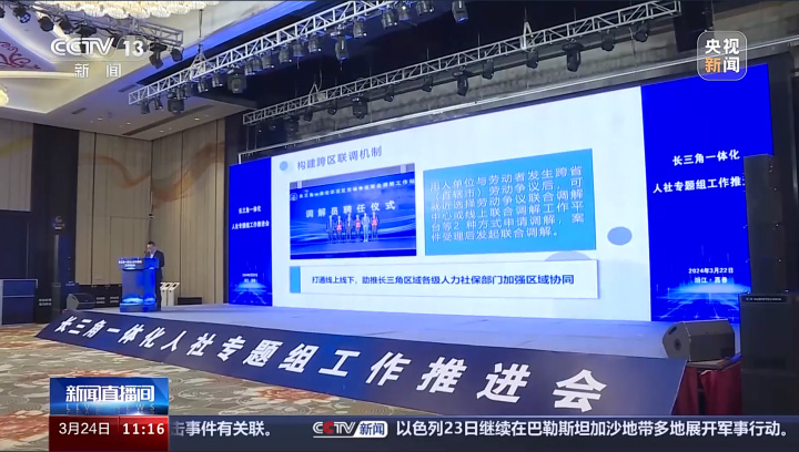 3月24日,中央廣播電視總臺新聞頻道《新聞直播間》播出《長三角一體化人社專題組工作推進會》;